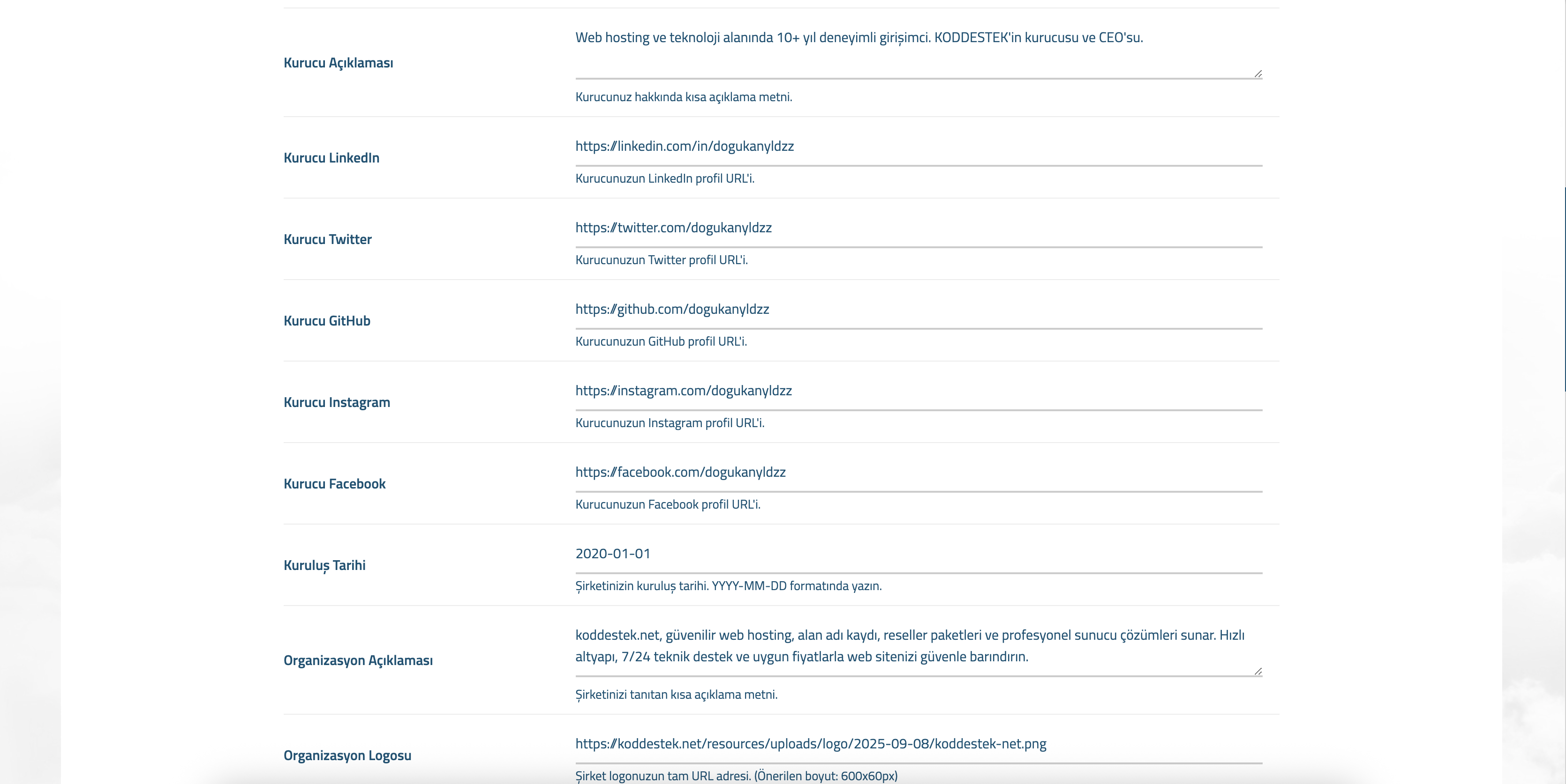 "description": "Şirket açıklaması",